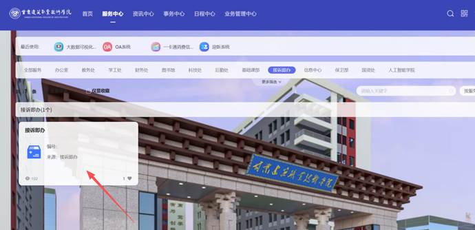 校内师生关注甘肃建筑职业技术学院官方小程序、云上建院APP登录进入“接诉即办”手机端平台,或通过校园门户访问电脑端平台,如下图: