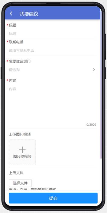 师生可在该模块提出自己要建议的事项;系统中姓名和单位为默认项,需师生填写问题的标题、本人联系电话,内容需要详细描述自己的问题详情,可上传相关图片视频或文件作为附件,最后选择是否匿名。填写完成后点击“提交”按钮即可提交问题。