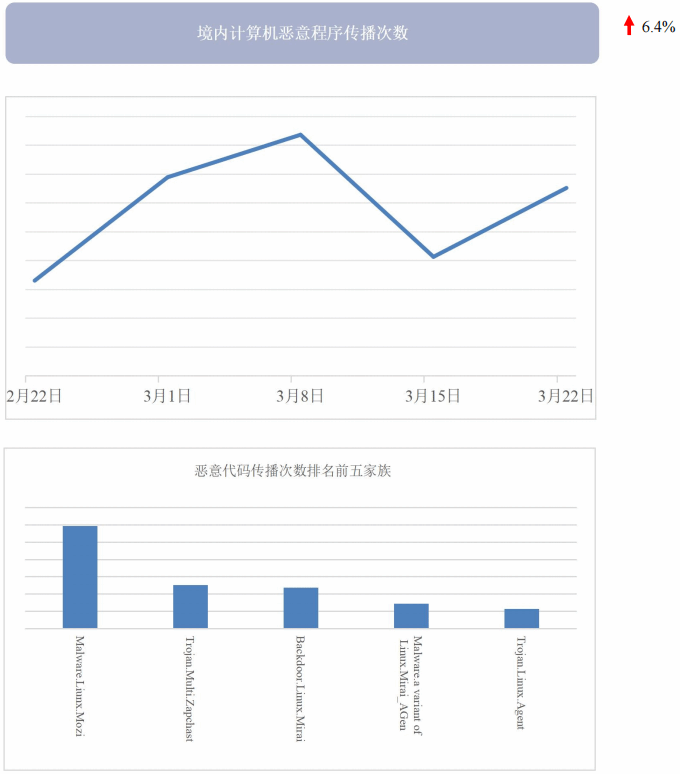 本周,互联网网络安全态势整体评价为良。我国互联网基础设施运行整体平稳,全国范围或省级行政区域内未发生造成重大影响的基础设施运行安全事件。针对政府、企业以及广大互联网用户的主要安全威胁来自于软件高危漏洞、恶意代码传播以及网站攻击。